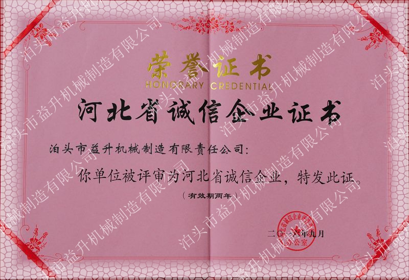 泊頭益升機(jī)械制造公司榮譽(yù)證書(shū)